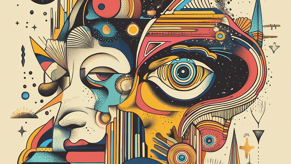 illustration, beige, face, psychedelic, mystical, eye, decorative, figurative, red, orange, turquise